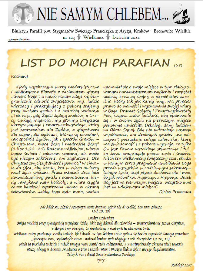 parafia.bronowice@gmail.com  12 637 55 96 lub +48 662 380 402